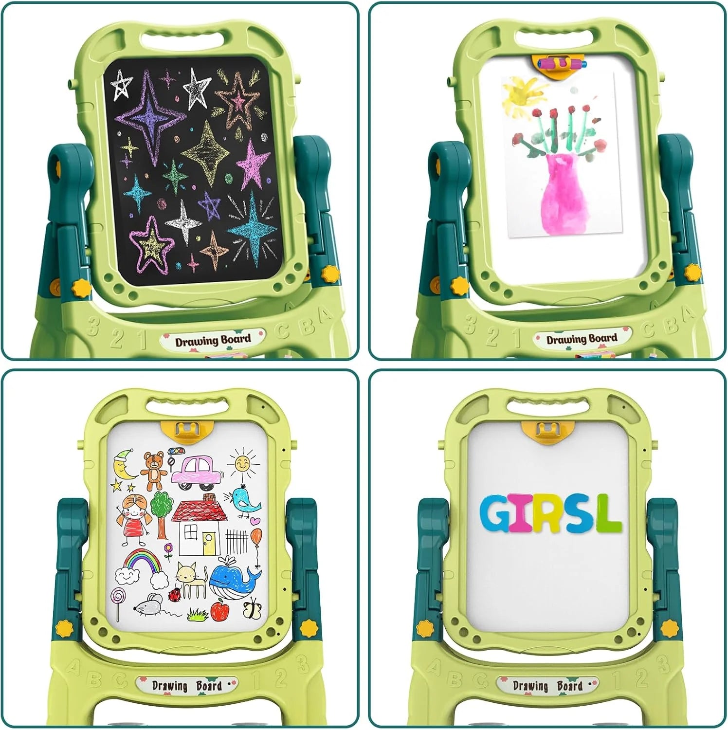 This 2-in-1 board features a whiteboard on one side and a chalkboard on the other, making it perfect for drawing, writing, and learning at home.